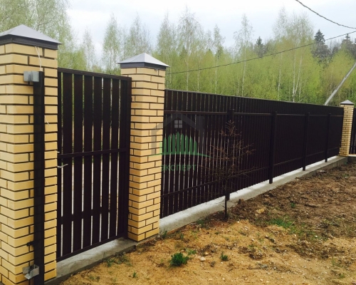 Откатные ворота, кирпич для столбов и все сопутствующие материалы для ленточного фундамента доставляются отдельно.